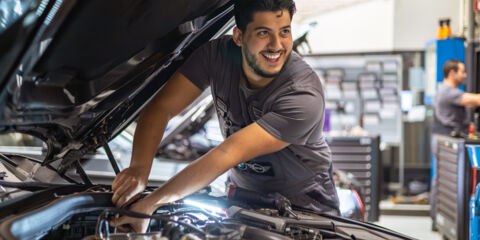 Autoliefde zat er bij Ramazan (21) al vroeg in. “Ik was een jaar of elf,” vertelt hij. “Mijn vader deed de motorkap open en ik stond er meteen naast. Ik wilde zien wat hij deed, hoe alles werkte.” Die nieuwsgierigheid is nooit verdwenen. Nu werkt hij als leerling-autotechnicus in de werkplaats van NobraCars Uden.