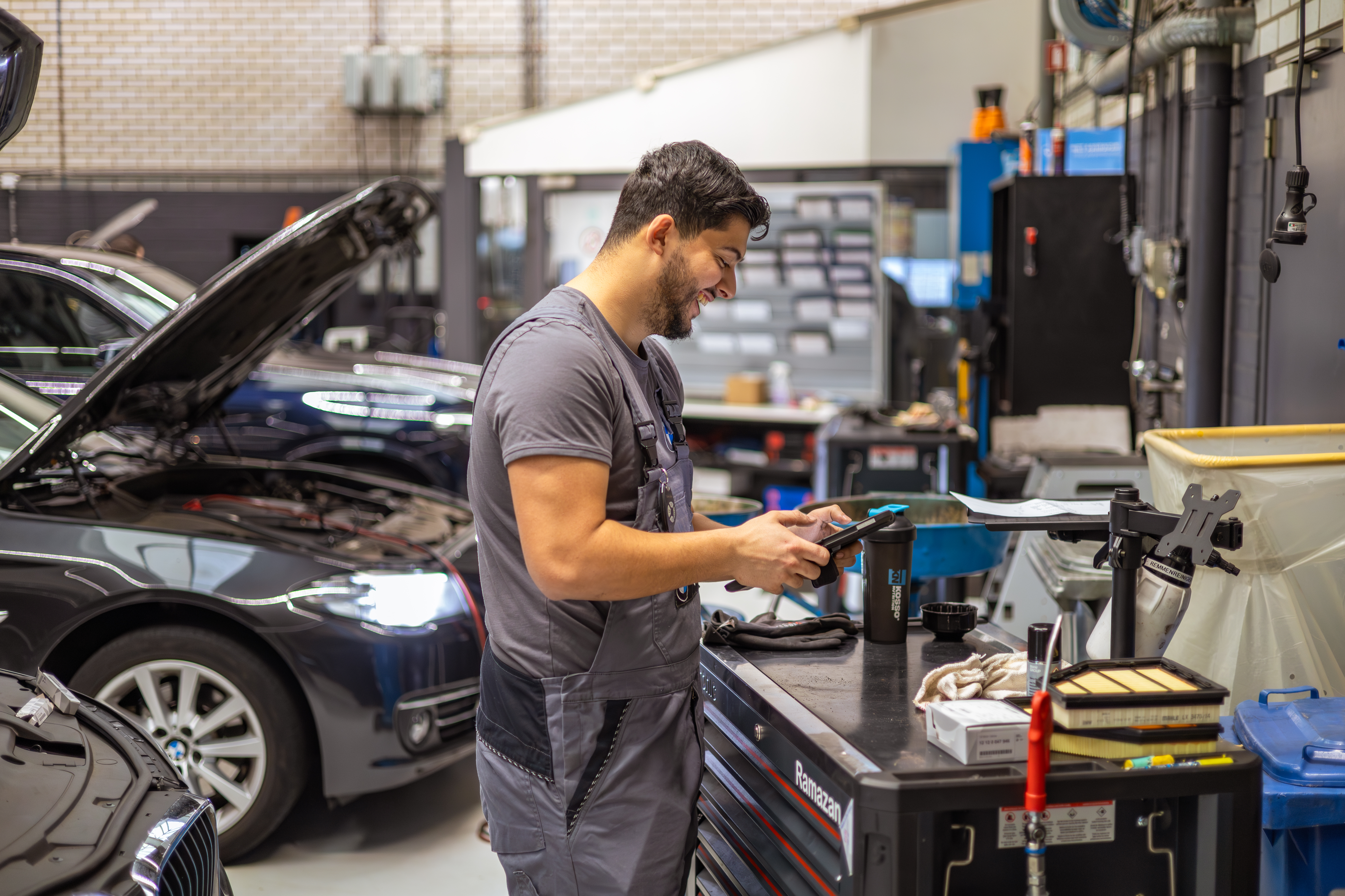 Werken bij een officiële BMW-dealer maakt voor Ramazan echt het verschil. “Iedereen heeft een eigen gereedschapskar met naam erop en een eigen brug. Dat is je eigen plek. Ik hou van geordend werken, dus dat past goed bij mij.”